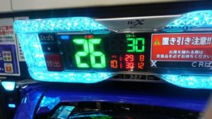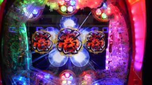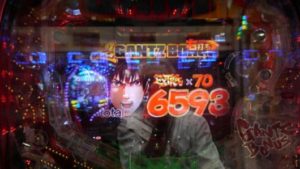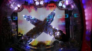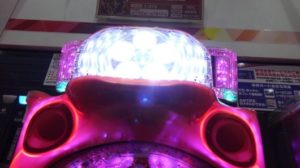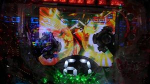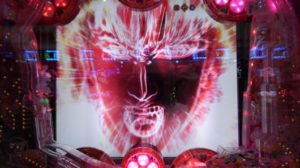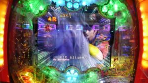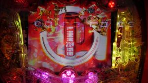 まだまだ負けていましたので、次は「CR GANTZ EXTRA」に座りました。本日22回当りの32回転の台でした。慶次2の出玉も飲まれた111回転、入賞時フラッシュ+女子キャラリーチ→外れ→VSぬらりひょん第一形態+AIR VIBE→「7」当り。