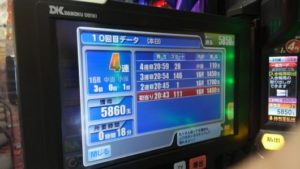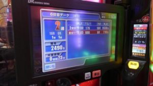 2連目は「八」テンパイなので安心でした。その後3連することなく、100回転以内で転落しました。不調台の見本でした。160回転まで回してやめました。