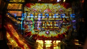 「 点滅」保留がドキューンと入賞+「緑」保留+キャラストック?+疑似連×3+タイマー「赤」100秒+金タイマー+「不二子ゾーン」+ストーリーリーチ4人中に一発告知「キュイン」+3連サーチライト「金」(これが重要)→「6」当たりでGOLDEN TIME ゲットしました。