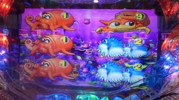 9連目は、29回転、「魚群」+マリンリーチ→「エビ」5R確変当たり。