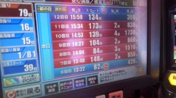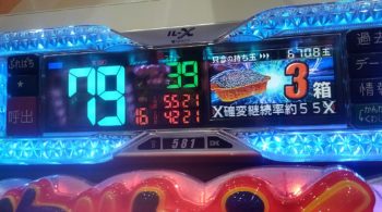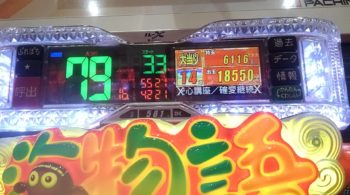 午後8時の段階で、79回当たりなら、閉店まで打てば、今度こそ100回大当たりまで行きそうな感じでした。