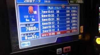 昨日、総当たり33回で止めた台が、その後も6連して合計、39回当たりまでのびていました。