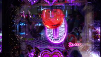 総投資19.5Kの322回転、保留変化なし+ロゴギミック落下+変身チャレンジ+ハートギミック完成+激ラブブースト予告+インフルエンサー+「赤」カットイン→「1」2R当たり。