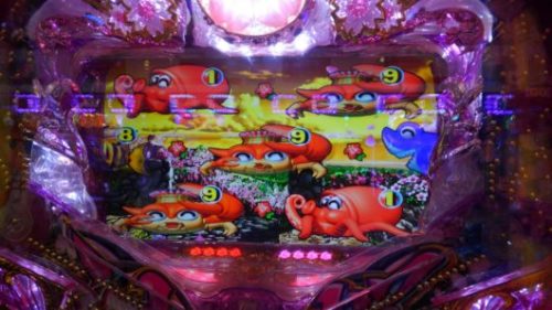 3連目は時短中の93回転で、沖縄モード+「泡」+「タコ」×「ハリセンボン」ノーマルリーチ→「ハリセンボン」4R当り。