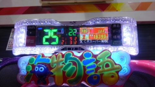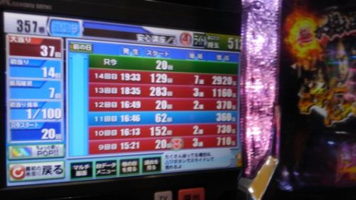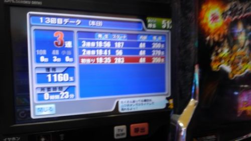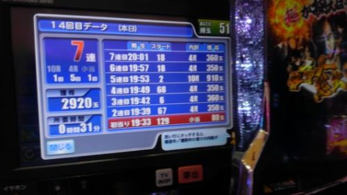初打ちで3連と7連でした。新しくできた演出は良いのですが、「七」タイムと「紅」タイムは「ガセ」ばかりで、超確変当たりしないと導入前の評判のように甘くはありません。