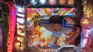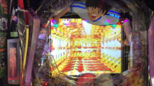 役物がメインの演出になっています。上部のライジングトップギミック2段上昇と翼くん役物のオーバーヘッド演出も強リーチ発展の合図です。