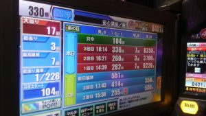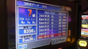 ルパン三世で初当りが282回転で7連。260回転で3連。合計10回当たり323回転の台がありました。ゾロ目の333回転狙いです