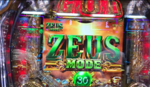通常時の初当たりが「ZEUS BONUS」の場合、「ヘラクレスモード」の時短5回転に突入します。時短が継続なら「ゼウスモード」の時短30回もしくは時短95回転に突入します。
