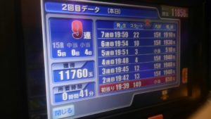 3台も空いていましたが、まずは5連して180回転の台に座りました。保留変化が良く起こるので230回転まで粘りましたが、静かになったのでヤメ。