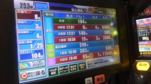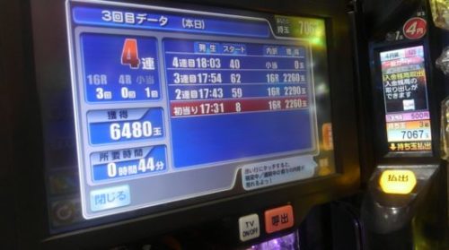 総投資、1.5Kで回収が6480玉。換金が23Kでプラス21.5Kでした。