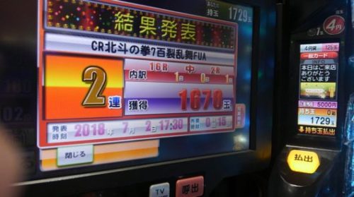 良いとこなしの新台ばかりなので、久しぶりに「CR 真・北斗無双」のシマへ行きました。1700玉弱の差玉を4台に使い、辿り着いたのは、