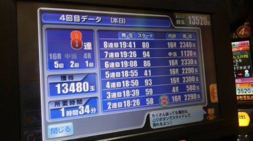 連チャンした好調台で大当たりを引けることが、このサイトを運営している甲斐があります。大連チャンまで行きませんでしたが、8連してくれました。
