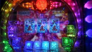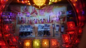 投資7Kの199回転、「赤」保留+疑似連+「すり替え」+「玄人RUSH」+「役満テンパイ」+「ストーリーリーチ」で「六萬」大当たり。「天運」ボーナスがラウンド昇格して「玄人バトル」をゲットしました。通常当りなら即ヤメするところでした。