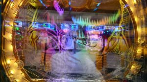 即落ちしそうな台なので保留消化したり、いろいろ試して134回転目に16R確変が当たりました。