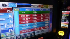 空いてたのは初当りが7回もあり200回転以内に当たっている台でした。1回目と2回目の履歴が写真にないですが、朝一に6Rの通常当りで次が6Rの潜伏確変。