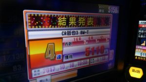 たったの4連で、結局2Rが1回、6Rが1回、16Rが2回でした。時短後、即やめで5150玉変えました。総投資が7Kで回収が18.2Kの+11.2Kでした。