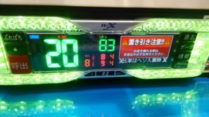 「玄人BATTLE」継続になっていますが、この時に盤面左上の7セグの2Rが点灯していました。満点棒×4.5のVSハブですので確変ならと思ったのですが、この「玄人BATTLE」中にVSハブリーチを2度も外し(2Rランプ点灯なし)、83回転で通常画面に戻りました。