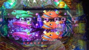 2連目は17回転、ステップアップ「魚群」+右タテ「ジュゴン」+黒潮リーチ→「ジュゴン」12R確変当たりでした。