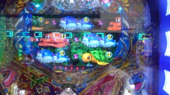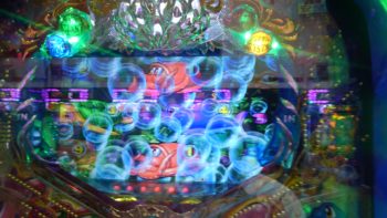 物は試しで、時短中の50回転でトイレ休憩して、「デモ出し」しました。戻ってすぐとはいきませんでしたが、72回転で「泡」連続予告×2+「ガセ(チャンス目ならず)」+「泡」連続予告×1+「ビッグバイブ」+「魚群」+「ヤッコ」×「カニ」+マリンリーチ→「カニ」当たり。