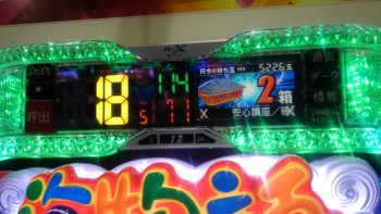 27回転で残念ながら、「サメ」当たりで2連でした。「魚群」が出ないと通常当たりですね。