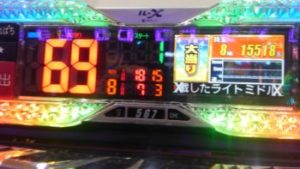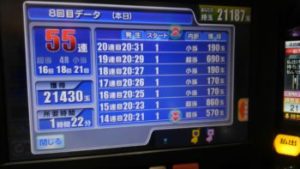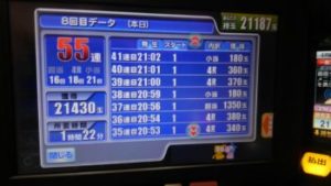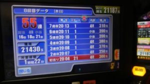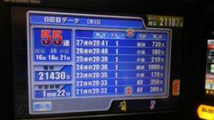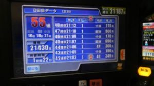 簡単に言いますと55連中、ストップボタンを押さず、ハンドルから決して手を放さずに打ち続けた結果です。