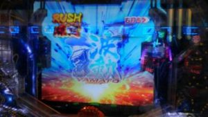 続行の21回転、「緑」保留+艦長連続予告×3+ヤマトタイトル予告「赤」+波動砲リーチ+「ガミラス最終決戦」→「1」4R当たり。ラウンド昇格して「波動RUSH」突入しました。