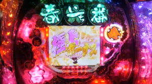 ヘソ入賞時は「七」図柄揃いは「極上ボーナス」でSTが100回転。「宴会」ボーナス図柄揃いもSTが50回転もしくは100回転。「七」図柄以外が「舞ボーナス」と言い確変か時短か分からない「花凛乱舞モード」の時短50回転もしくは100回転となります。
