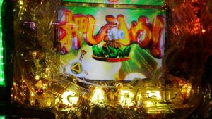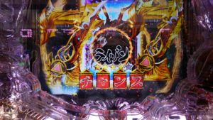 投資8.5Kの527回転(実質341回転)、斬馬剣保留「金」+「牙」「翔」「狼」+SOW TIME+「初台」と「金色」の2択で初台選択→V入賞当り。牙狼剣を押し込めの演出すらなかっのですが「チュ・チュ・チュイーン」と鳴っときに確変と確信しました。