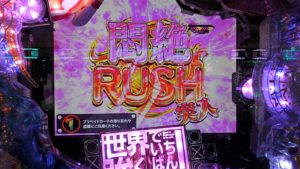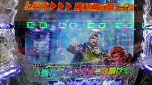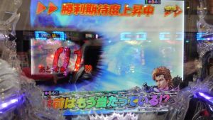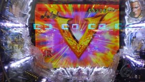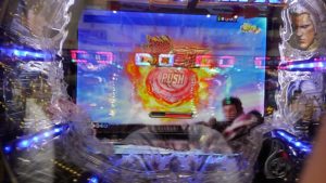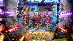「お座り一発」とは行きませんでしたが、投資2.5Kの226回転、保留変化なし+疑似連×3+「神拳ZONE」+「決戦リーチ」VSファルコでラオウ「キリン柄カットイン」で無事に当り。「6」→「5」幻闘RUSHに突入しました。