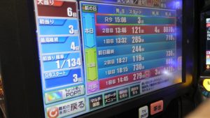 まず、ホールに到着してこの台で投資1.5Kで当たりました。9連して時短後即やめ台でした。