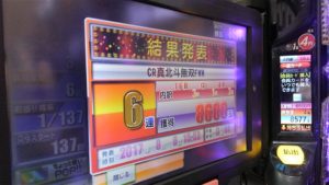 総投資、7.5Kで回収が8500玉で30.2K30.2Kの+22.7Kでした。「CR世界で一番強なりたい」で連チャンしなかったから、「CR真・北斗無双」で6連出来たのかもしれません。