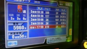 総投資16Kで差玉が5960玉で換金が21.4K。プラス5.4Kでした。この台で挽回できなかったら、連捷記録がストップするところでした。