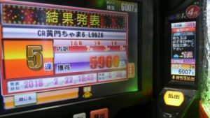 本日、2連+単発+単発当りの110回転の台でした。「CR黄門ちゃま」シリーズと思えないほどの静けさで何も起こりませんでした。良く回ったのでズルズルと打ち込んでいました。