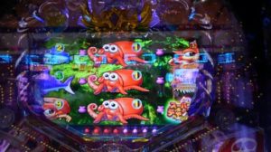 大当たりに絡むのは、海大国の起爆剤になった「魚群」演出につきるわけですが、パールフラッシュがないと外れ確定くらいなことは、派手な演出のための犠牲かもしれません。