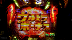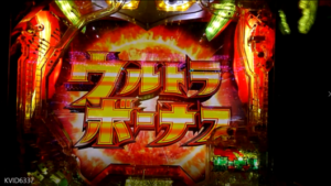 「ウルトラ ボーナス」の表示後に「大当たりラウンド」が普通に始まりましたが、再抽選や図柄もまったく出ませんでした。