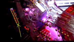 「右打ちランプ」の左側のランプ類の表示が、16R確変を表しています。