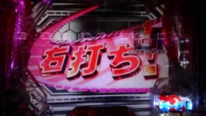 どういう演出が見れるのか、確認のためヘソ入賞させました。出たのは「右打ち」合図でした。「大チャンス変動中」と思ったのですが。