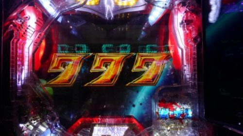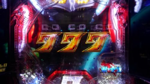 2連目は「赤」保留+AIR VIBE+Pフラッシュ+VSベムスター+「アルティメットハイパーセブンフラッシュ」→「1」→「7」16R確変当り。3連目は、AIR VIBE+Pフラッシュ+VSタイランド+アルティメットハイパーセブンフラッシュ」→「1」→「7」16R確変当り。