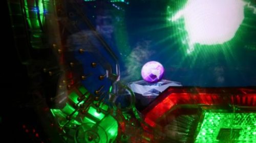 113回転から打ち始めましたが、やめる理由がないほど賑やかでした。「青」保留が多かったのですが、適当に入賞時フラッシュと「緑」、「紫」保留がありました。