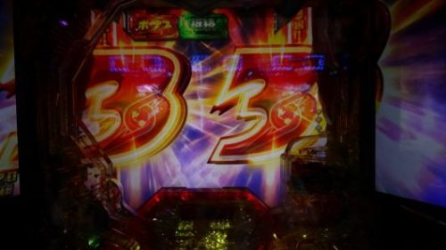 いつもなら100回転も回さないのですが、「赤」保留の「金」系なしを外しました。「激アツ」より、「赤」保留の内容が薄い台か出るのは良いことです。