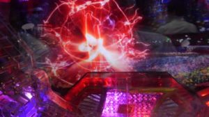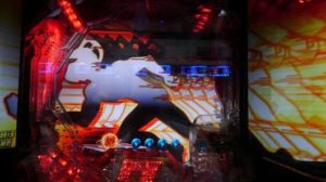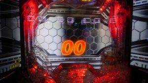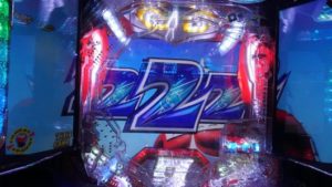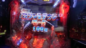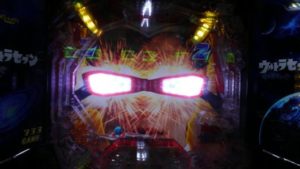 この後、170回転で入賞時フラッシュ「紫」+「赤」保留+疑似連×3+セブンチャージ「金」+決戦リーチVSビラ星人→「2」当り。キングジョーに勝てず、4R通常当りで、「 カウントダウンモード」100回でした。