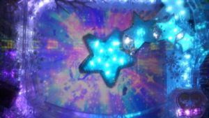 最初は沖パチモードにしていたのですが、プレミアムモードに変えてすぐの174回転、ポラリスチャージがいきなり「レインボー」で「赤」アルバム+「メガポラリス」+「湖畔」リーチ→「4」当り。