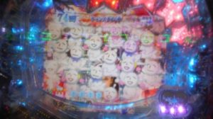 しかし、このチャンスタイム18回転で、「ゼブラ柄」雪だるま保留+ミニョン群+「赤」アルバム+「メガポラリス」+「湖畔」リーチ→「1」当り。