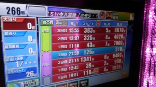 いつも通り、「沖バチモード」にしていたのですが、5連したのにエアーバイブが2度とPフラッシュが1度きりの昨日と似ても似つかない出玉となりました。出玉が昨日は12000発オーバーで本日は4800発ほどなので、台によってこれだけの格差が付きます。