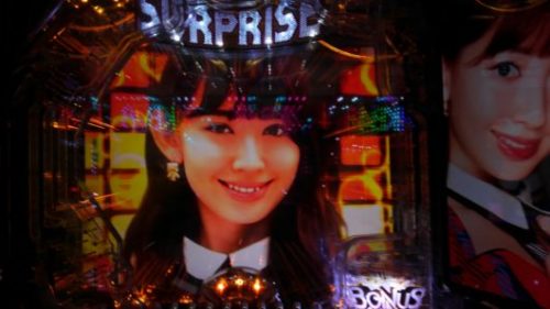 諦め気味に打っていた「SURPRISE コンサートST」中の43回転で、まさかの「エアーバイブ」が作動して、「1」テンパイ+48フラッシュ「」+超絶48フラッシュ+超絶SPリーチ+推しメン超絶カットイン+「」ぷにぷにボタン→「1」4R確変当り。