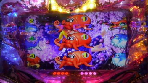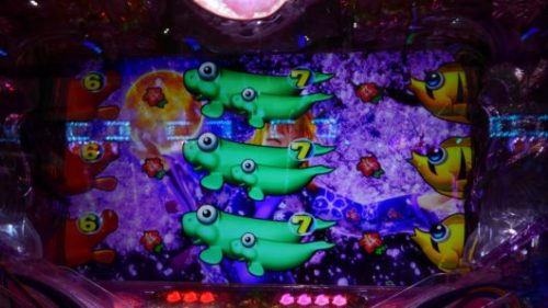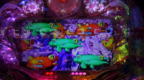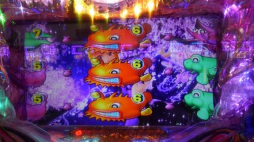 3連目は、ST中の19回転、沖縄モード+「魚群」+マリンリーチ→「ハリセンボン」当たり。