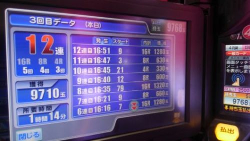 連チャンに恵まれているので勝ち続けていますが、連チャンしなくなった時、「大負け」のリズムになるので気を引き締めないといけません。