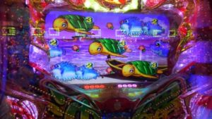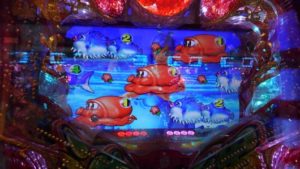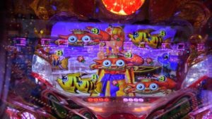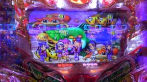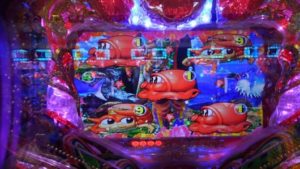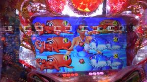 何も起こらないまま回転数が増えていきます。トレジャーモードに変えてすぐ、投資4.5Kの312回転、「魚群」+マリンリーチで「アンコウ」当りしました。2連目「ハリセンボン」。3連目「タコ」当り後は時短もスルー。200回転まで回して何もないので止めました。