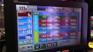1/119と思えないくらい、通常時にハマりますので、大人気にはなっていないのです。通常時に退屈なのも不人気の原因です。空いていたのは、午後2時の段階で12回当りで220回転の台でした。