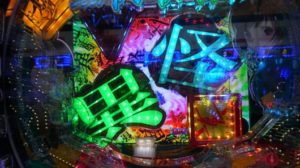 Sammyの台はロゴのフラッシュが大当たりに絡みます、KYORAKUは先読みの入賞時フラッシュで、Sammyは変動開始時のロゴフラッシュです。